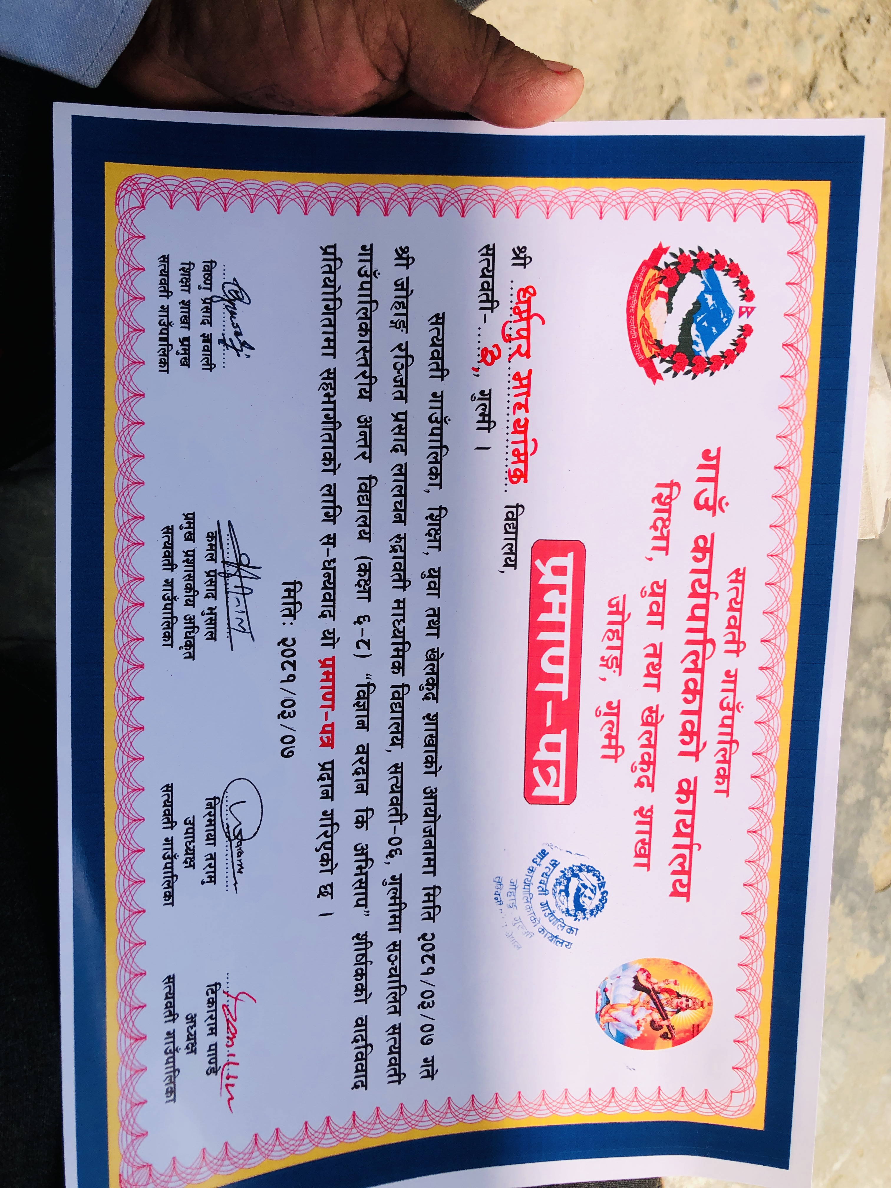 श्री साजपुर आ वि सत्यवती ३ कुटडाडा स्वर्ण महोत्सव २०८० आधारभुत तह हाजिरी जवाफ प्रतियोगितामा प्रथम स्थान हासिल गर्न सफल
